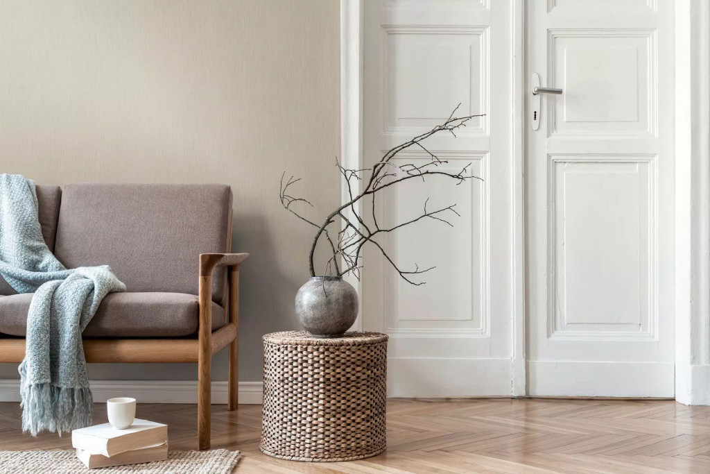 A színpaletta elegáns és időtlen - a meleg bézs és szürke árnya-