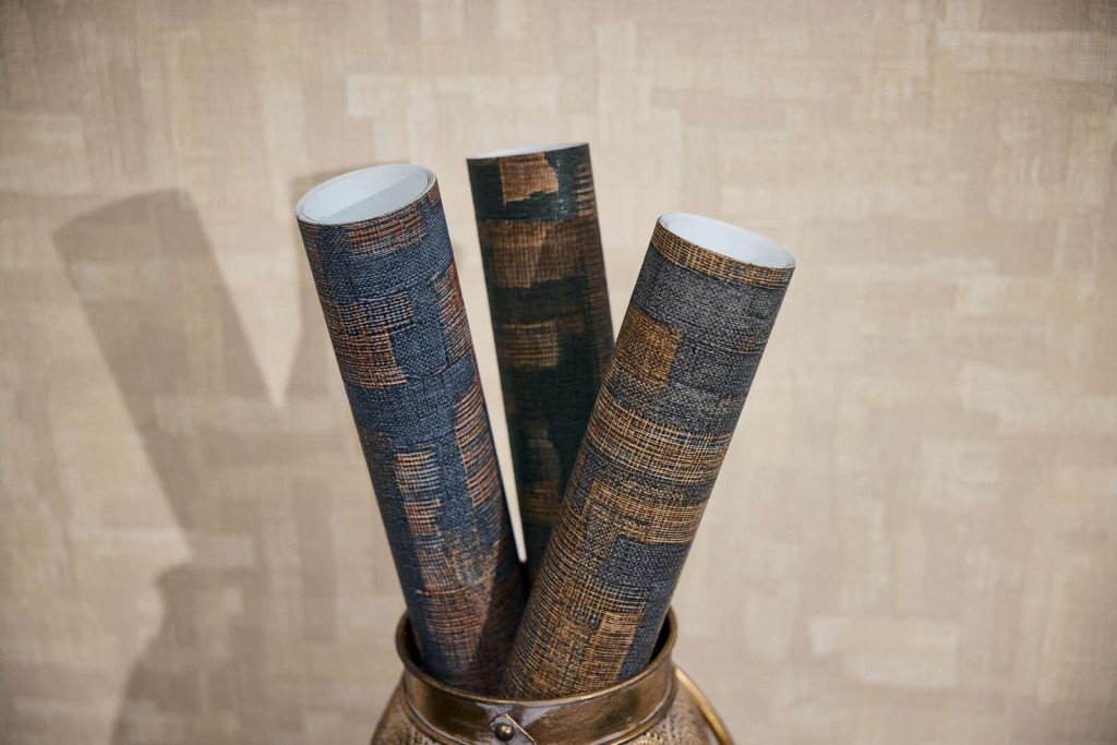 falára ahol a geometrikus design találkozik az organikus textúrával. A kék-bronz