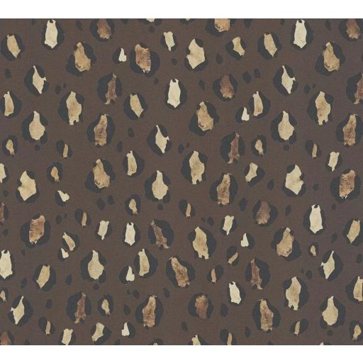 mély csokoládébarna alapon játszanak a fekete kontúros, homok és arany árnyalatú foltok.