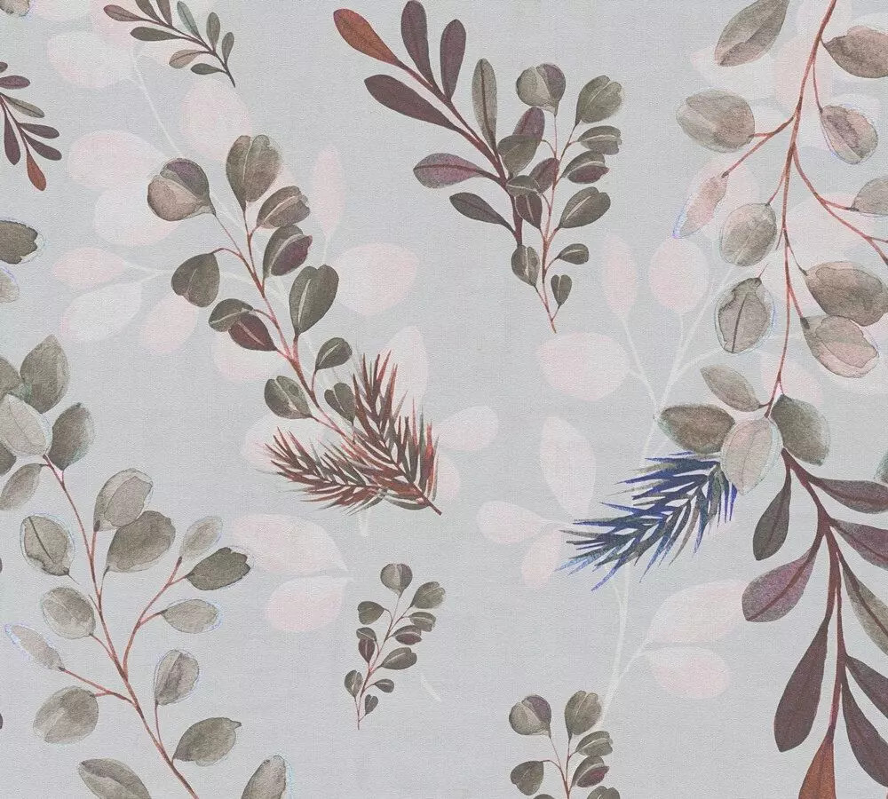 árnyalatú növényi motívumok lebegnek egy álomszerű téli kertet idéz. Az eukaliptusz