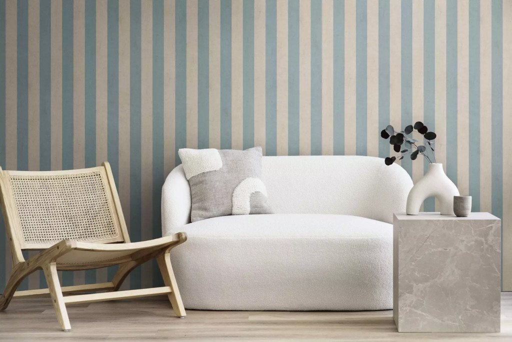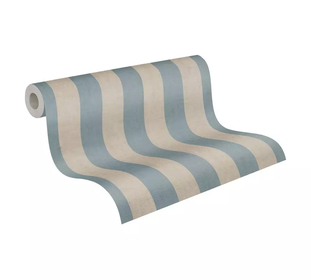Tipp : A tapéta bézs és kék sávok tökéletes harmóniáját tárja elénk, mintha a homokos part