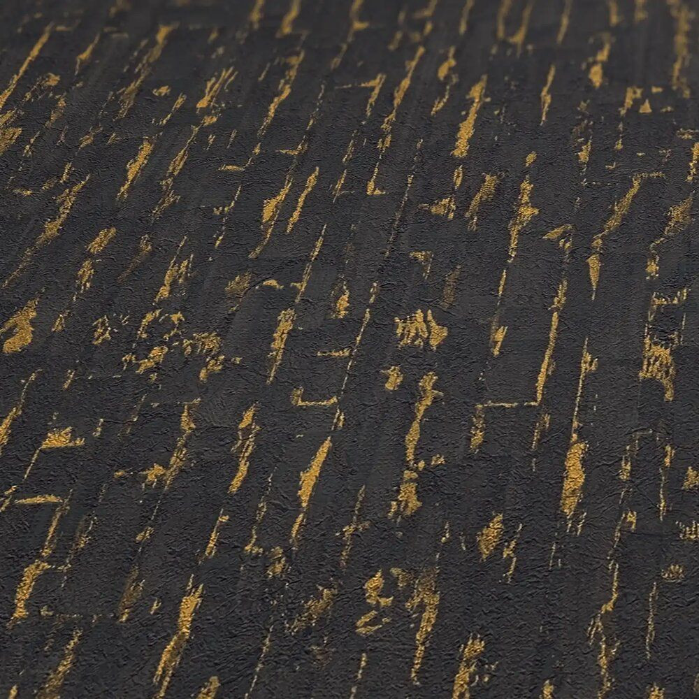 Tipp : Modern eleganciát sugárzó fekete alapon arany partikuláris csíkozású tapéta