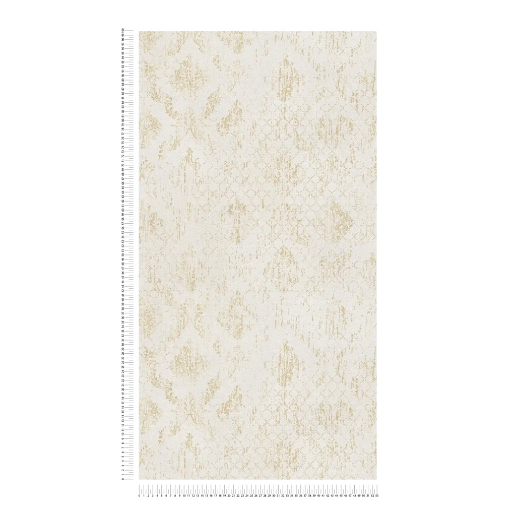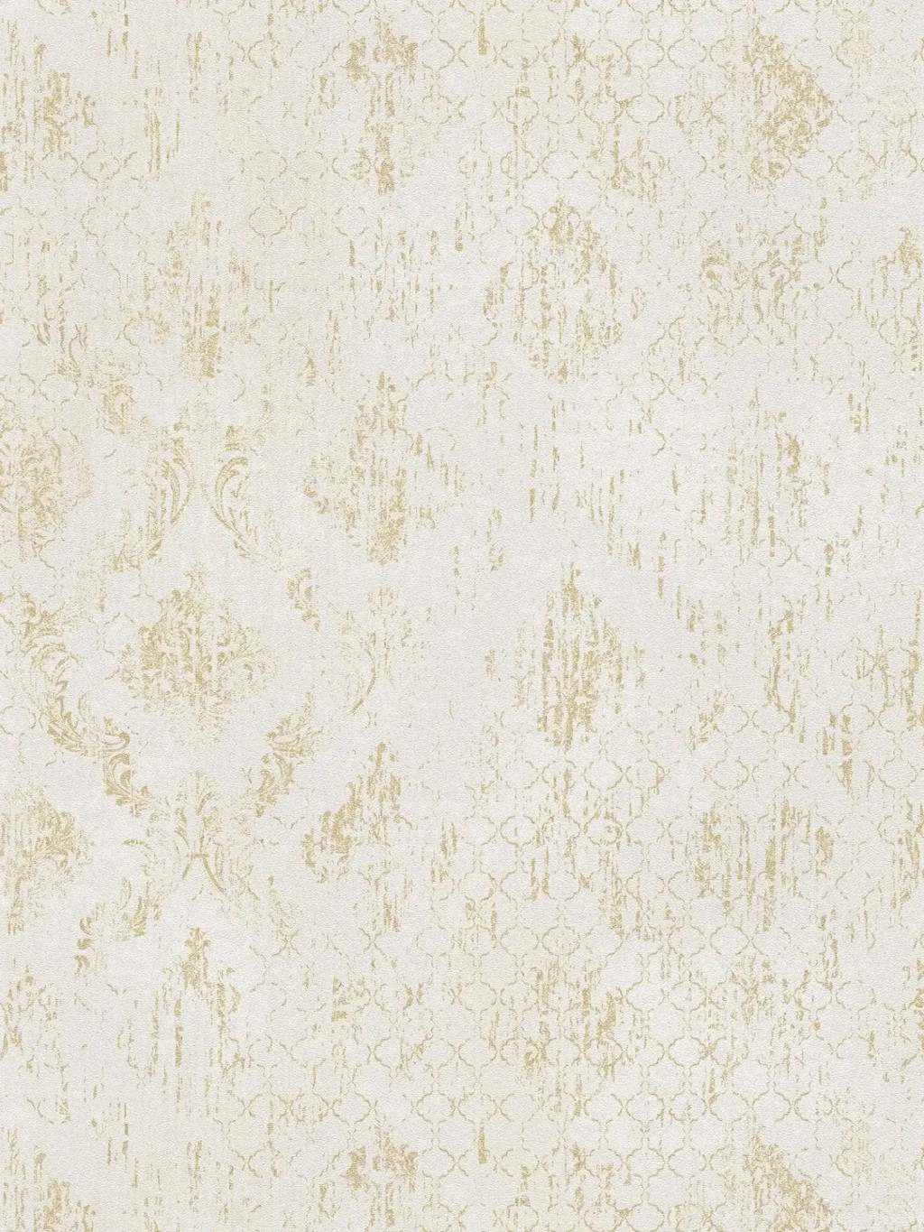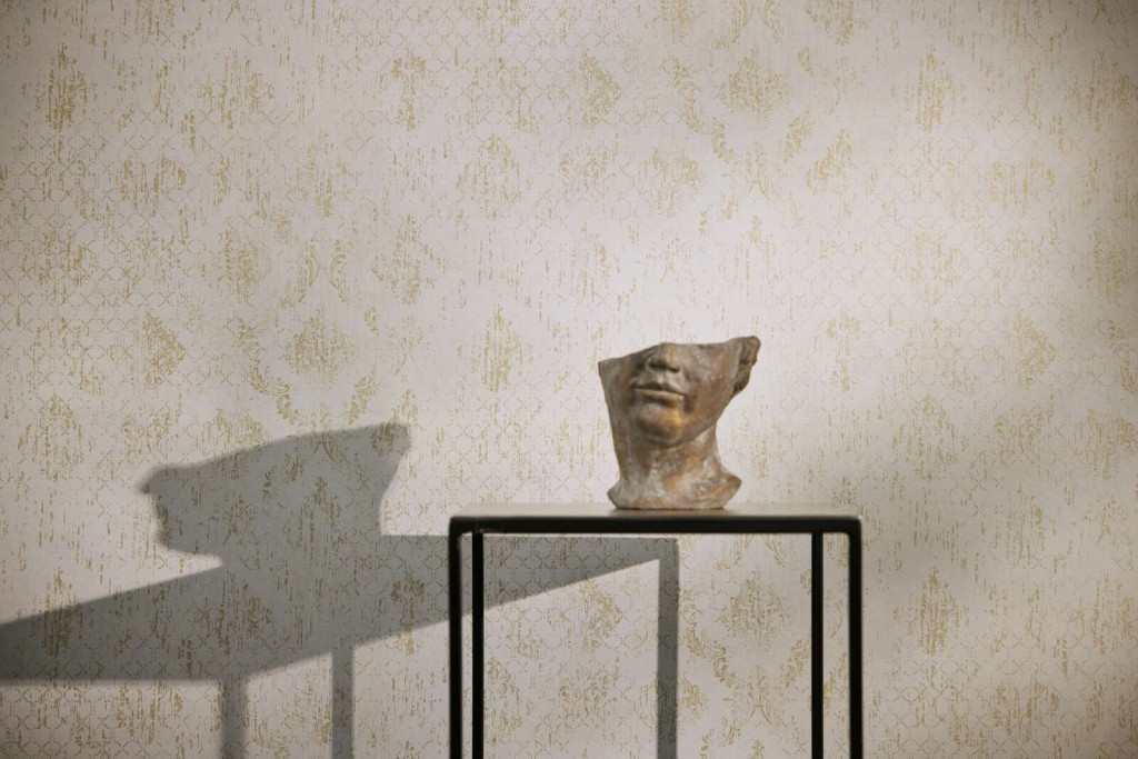 A krémfehér alapon megjelenő halvány arany árnyalatú damaszt minták úgy
