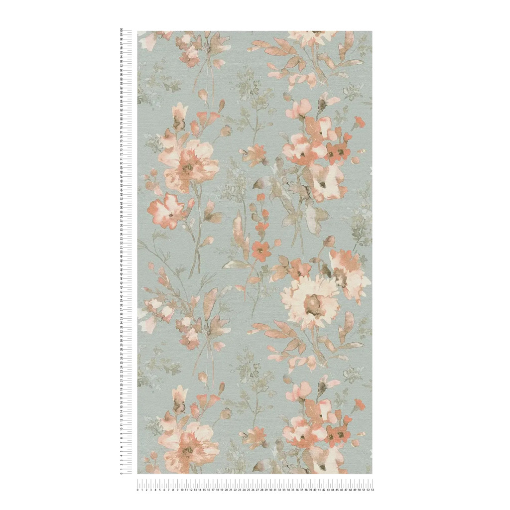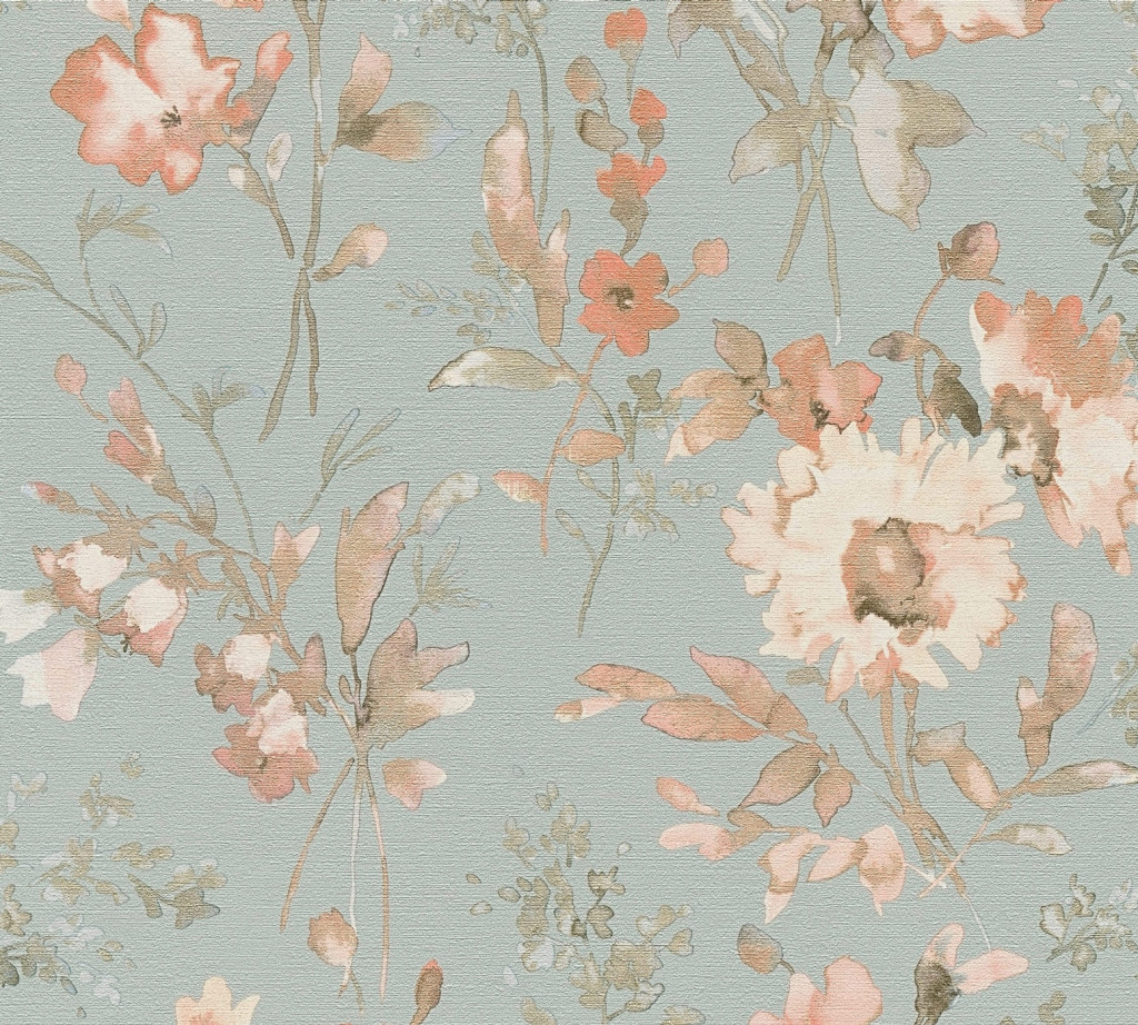 Tipp : A pasztell mentazöld alapon barackszínű és krémfehér virágminta