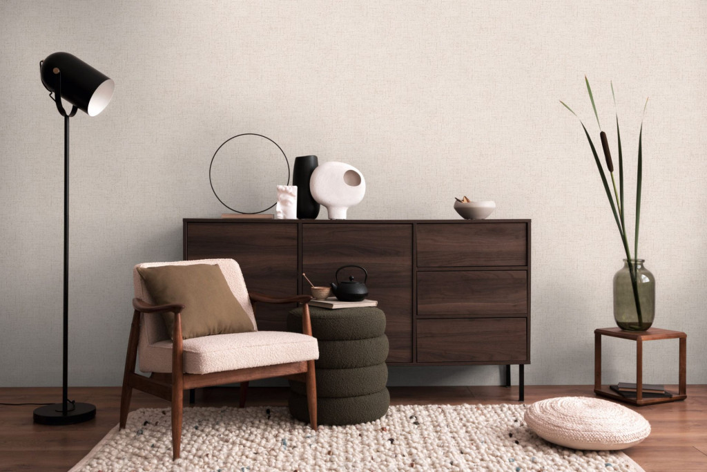 a falat. A tapéta organikus textúrája tökéletes választás skandináv