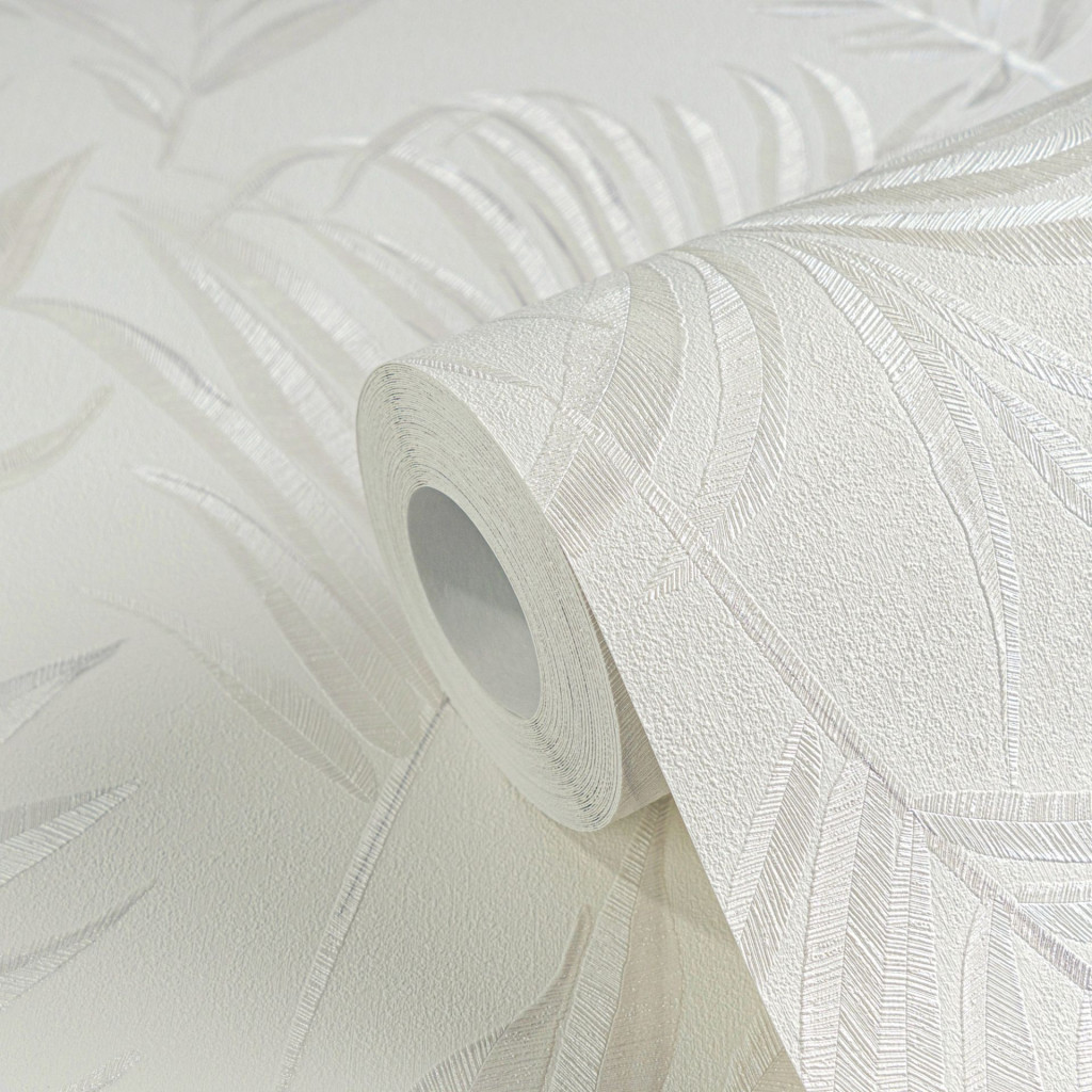 Tipp : A monokróm fehér-szürke pálmalevél mintás tapéta olyan kifinomult