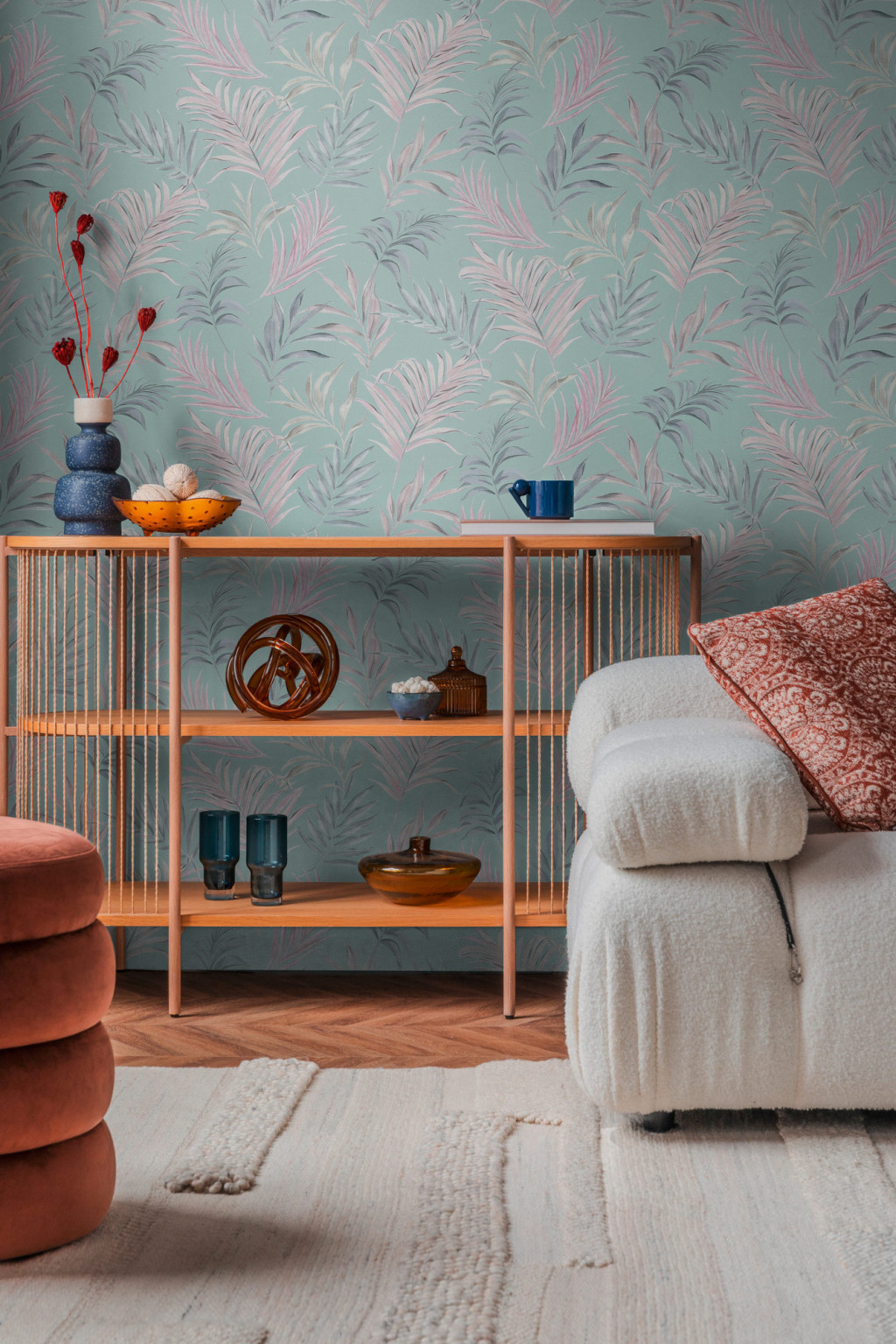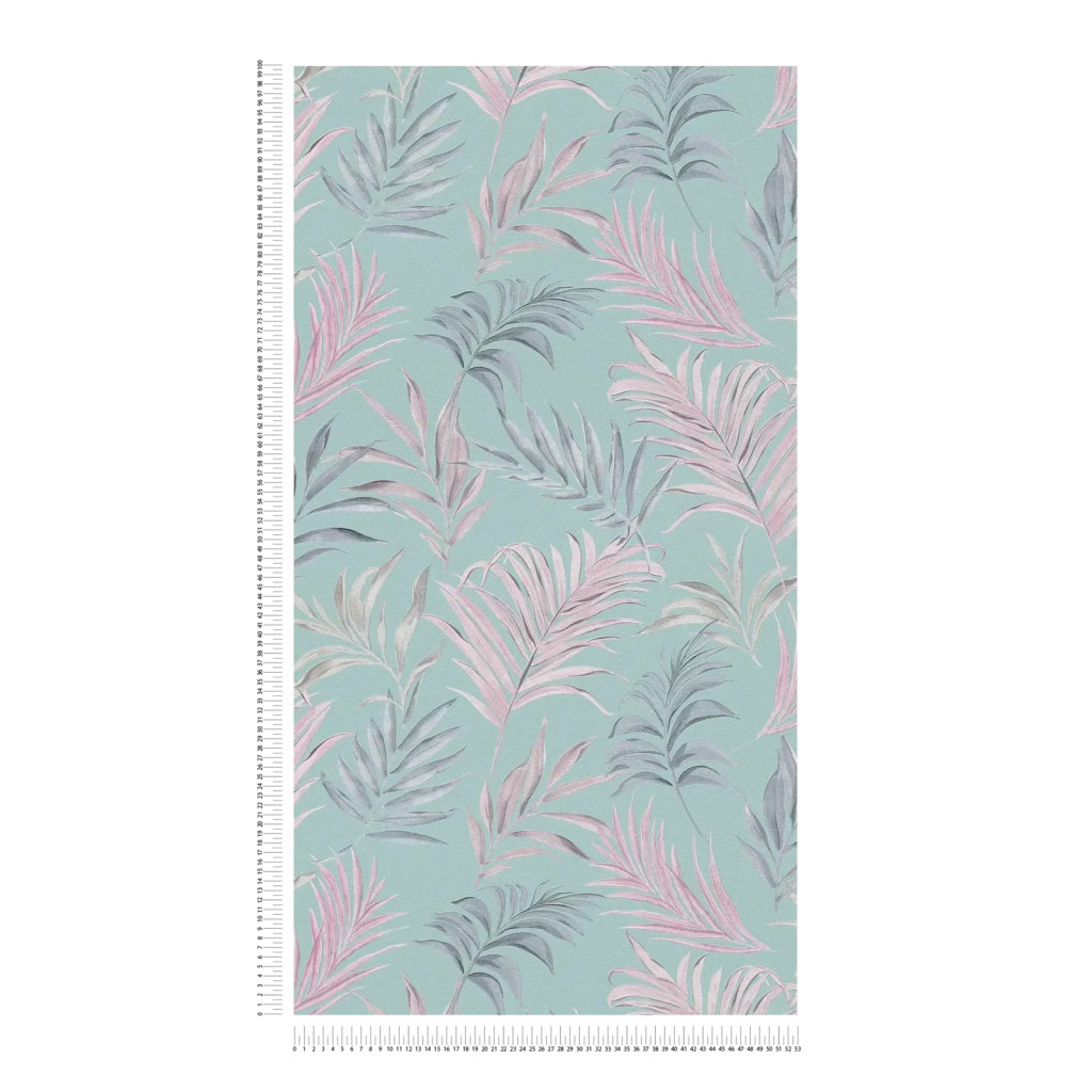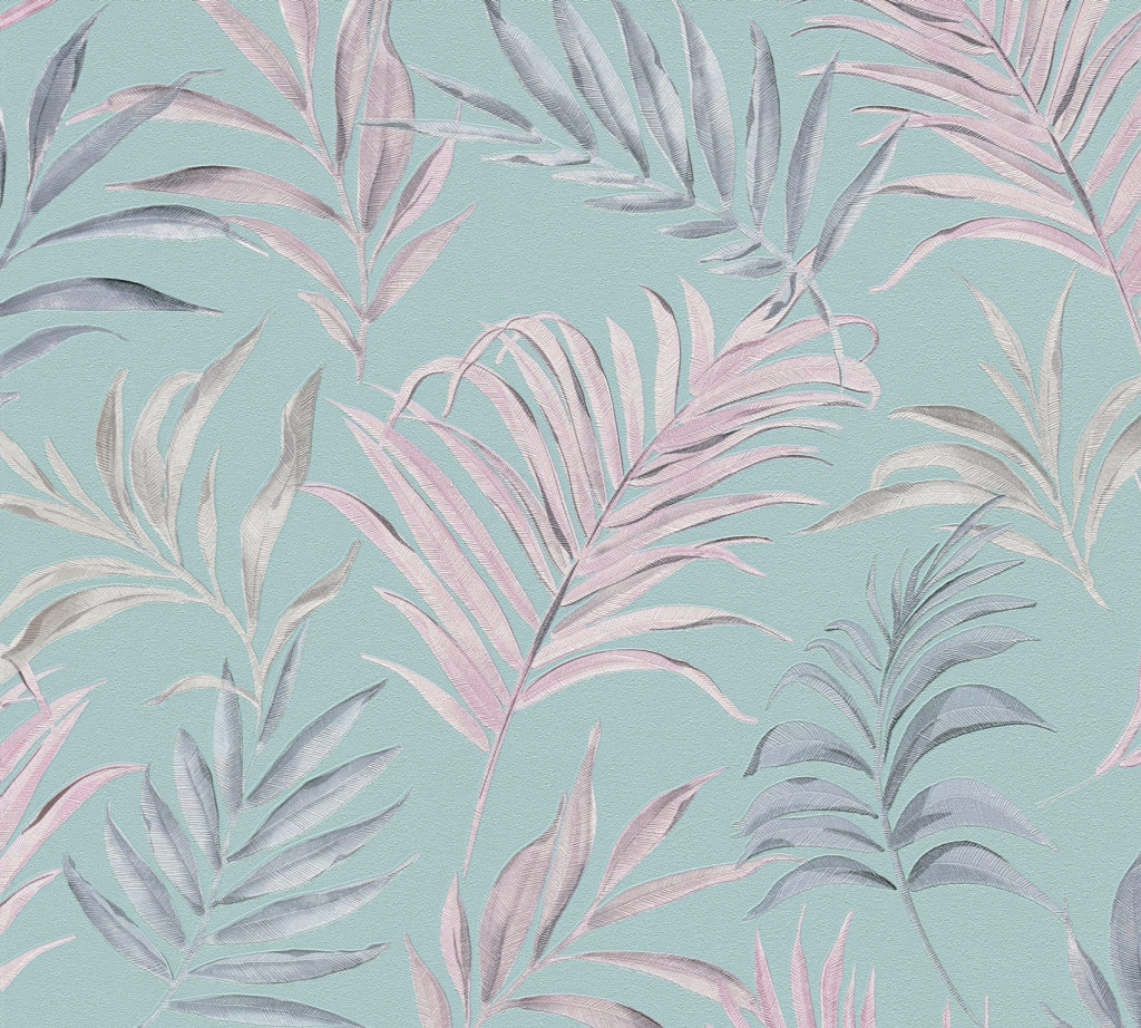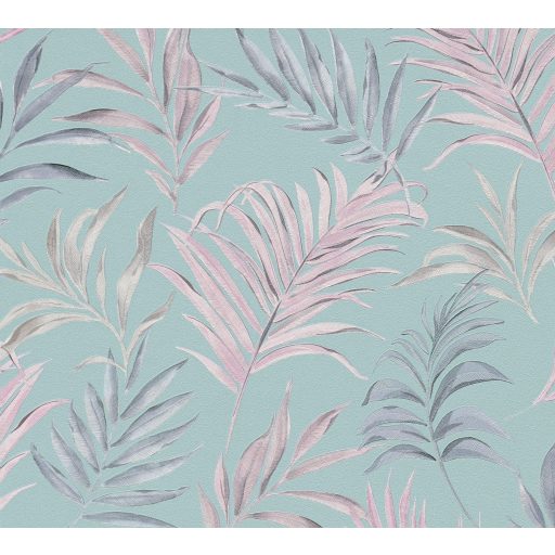 Tipp : A mentazöld alapon rózsaszín és ezüstszürke pálmalevél mintás tapéta