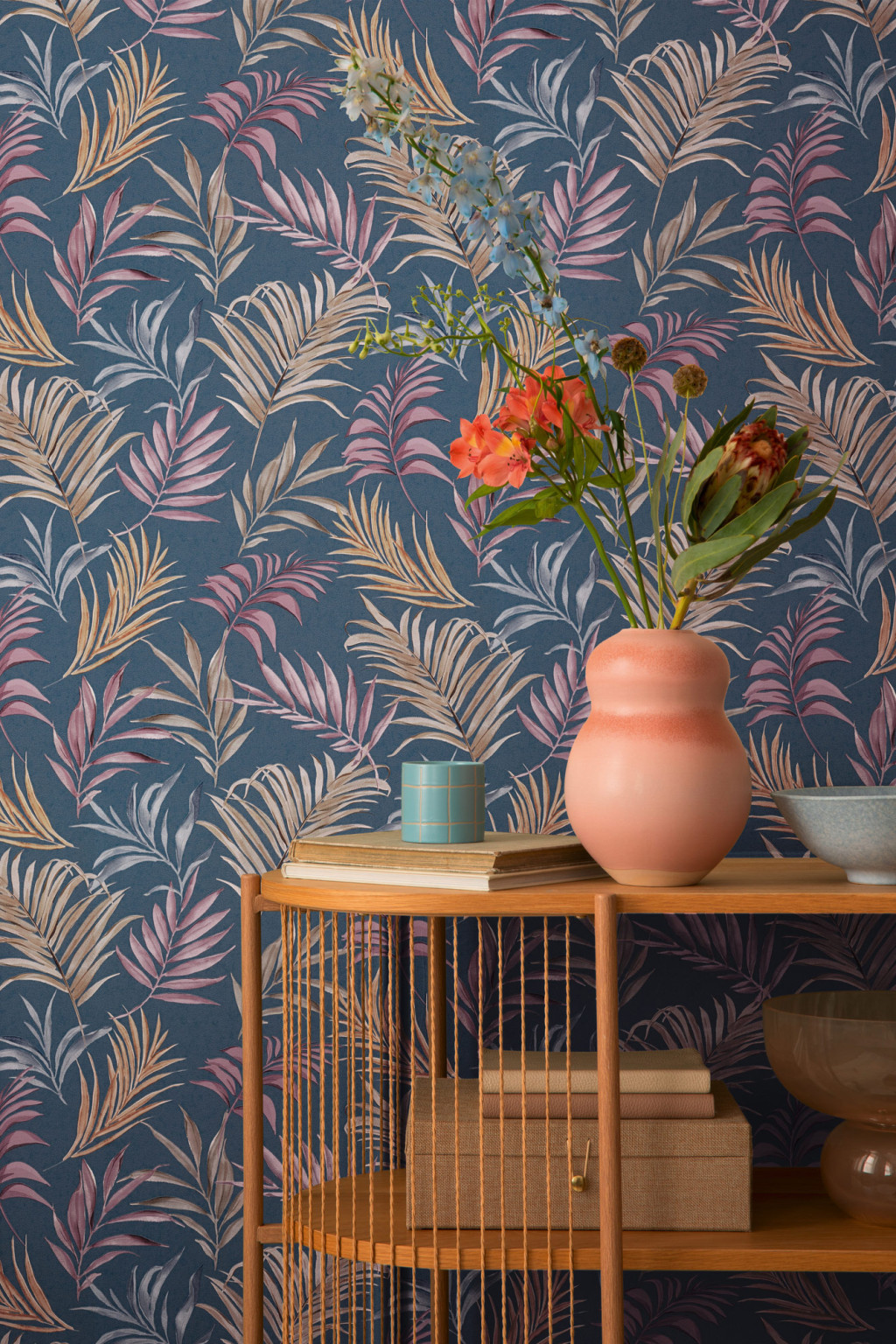 Párosítsd korall, réz, sötétkék és bársony textúrákkal a maximalist elegancia