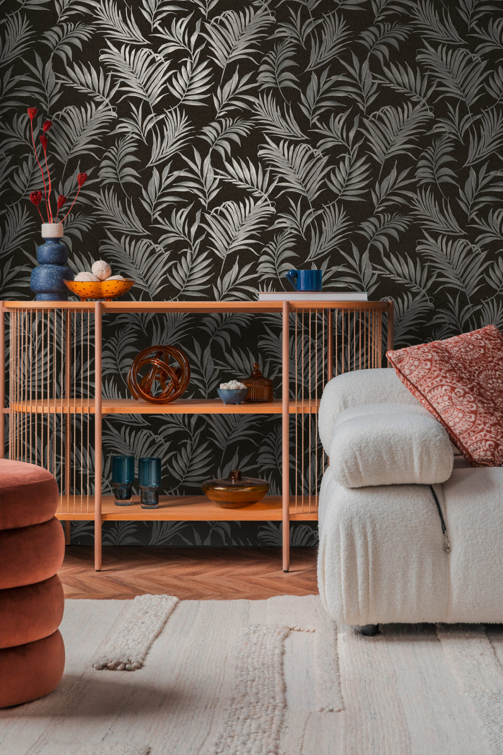 Tipp : A sötétbarna/antracit alapú ezüstszürke pálmalevél minta olyan titokzatos