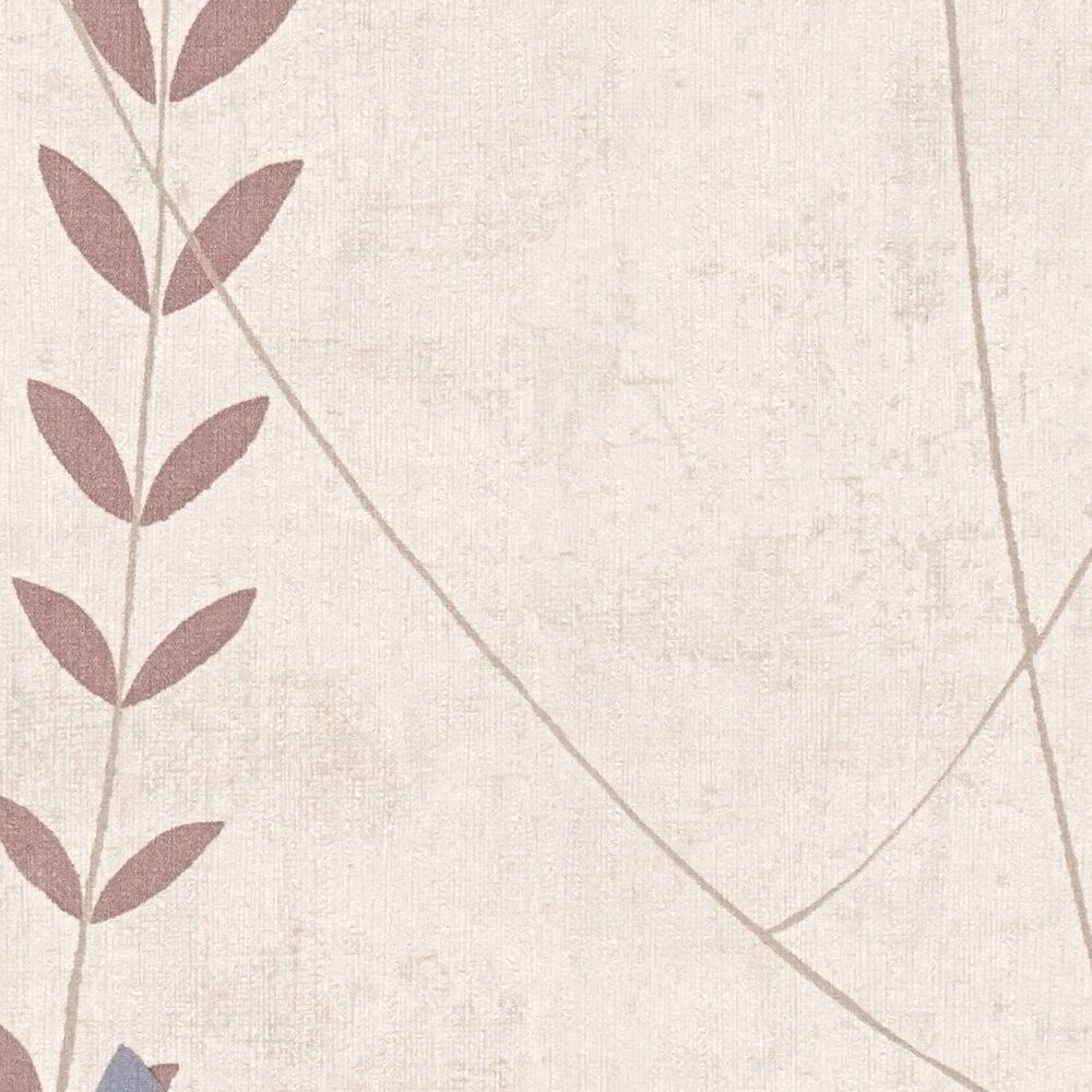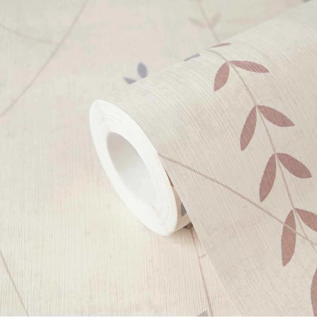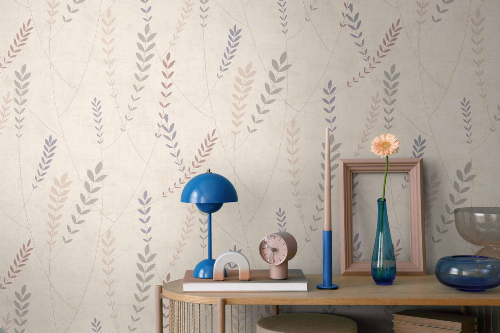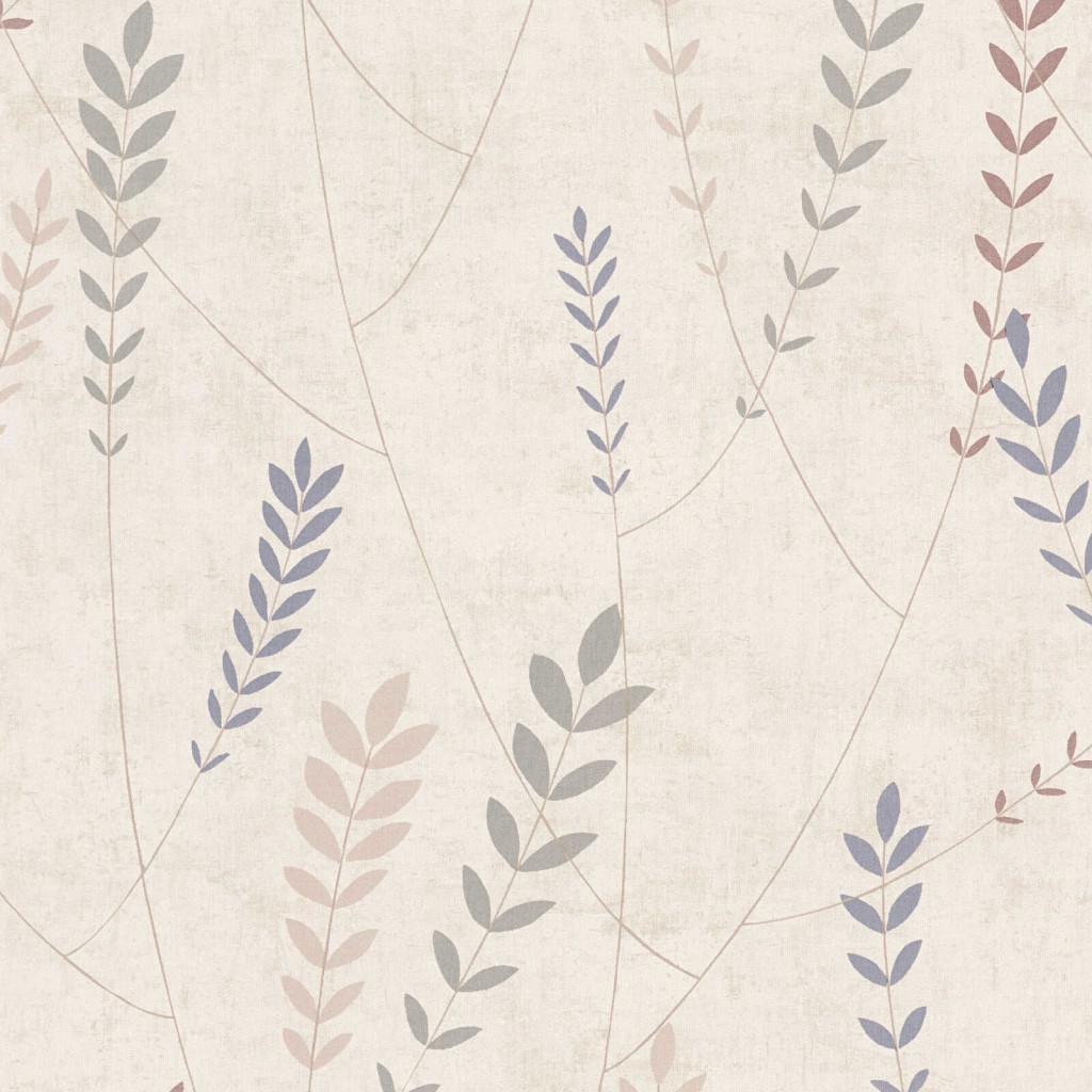 és halvány bézs levélkék lebegnek a fehér alapon, mint a tavaszi köd