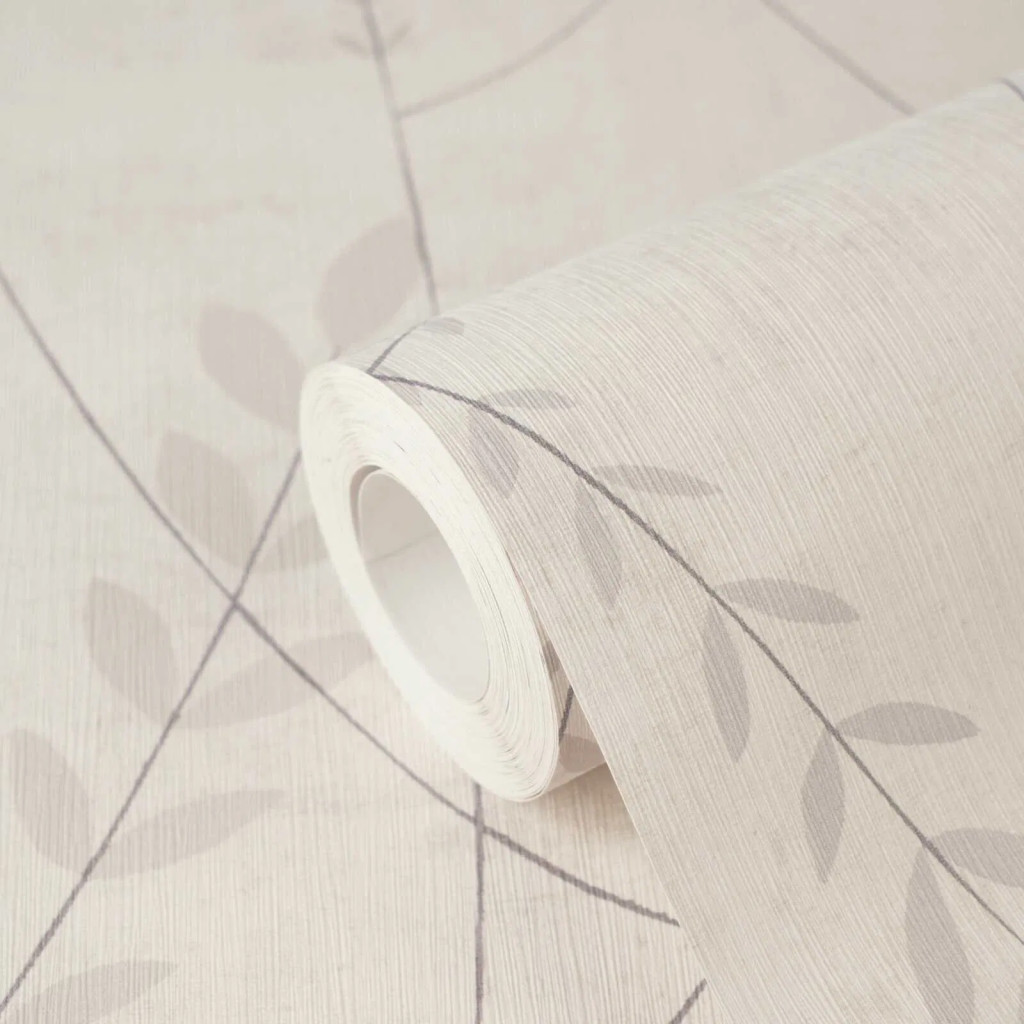 A természet költőisége - nemes és letisztult levélmotívum krémfehér szürke és szürkésbézs tónus tapéta
