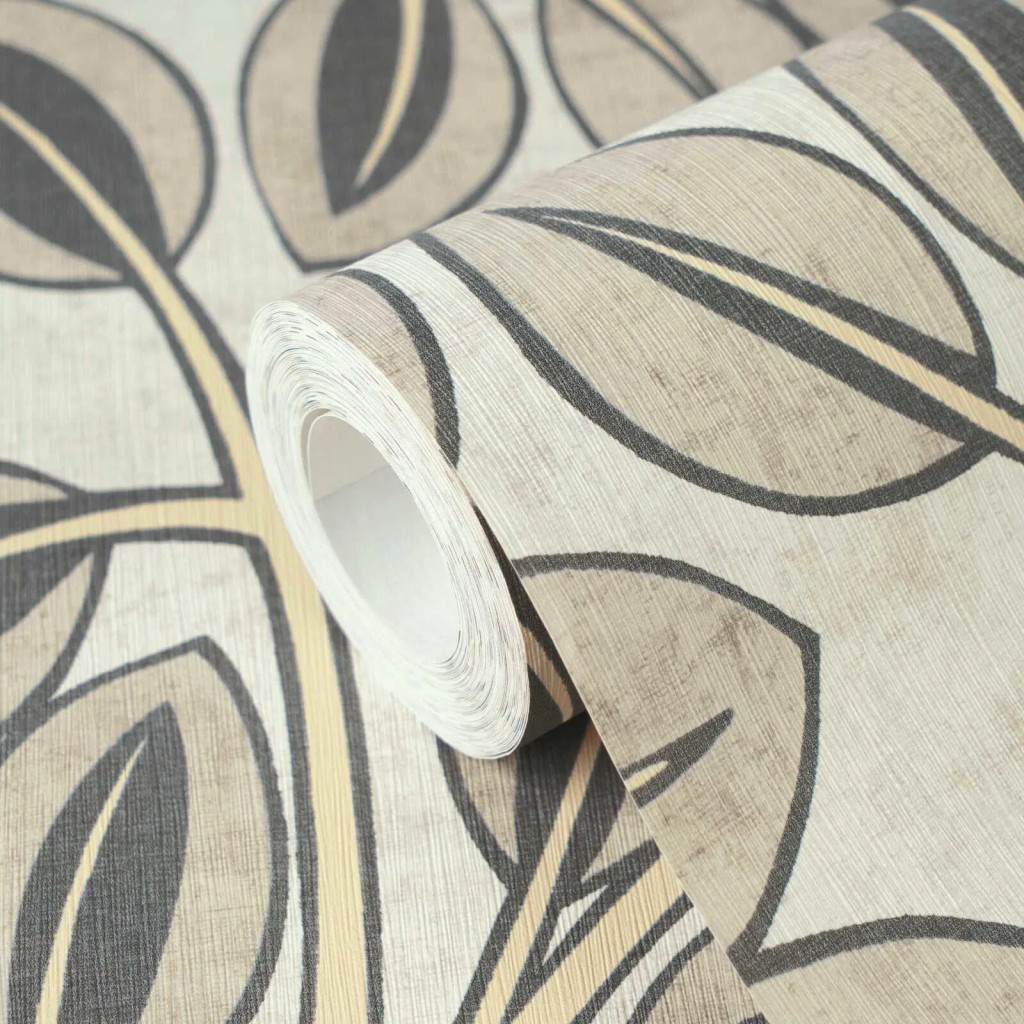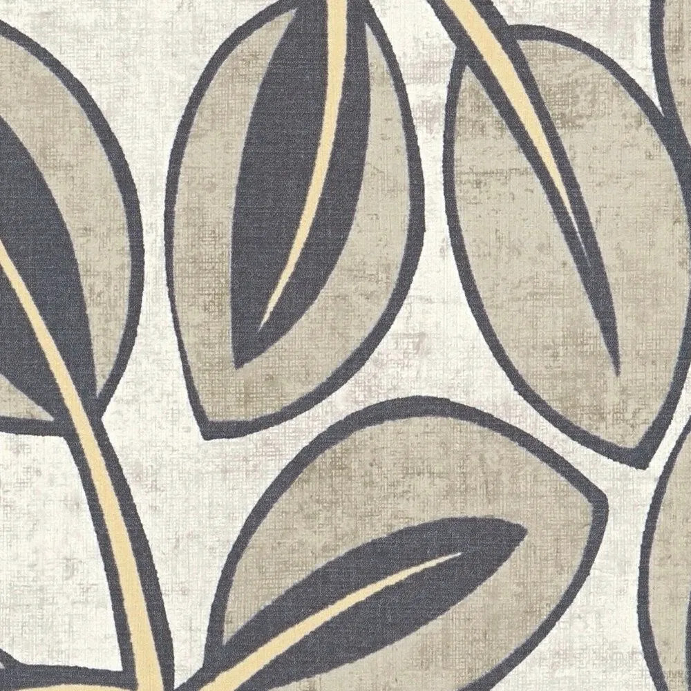 levelek rajzolódnak ki finom vonalakkal a krémfehér alapon. A matt