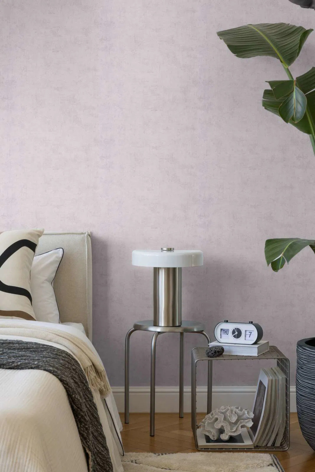 hűvös lila ragyogását emelheti ki. A tapéta függőlegesen strukturált textúrája és a