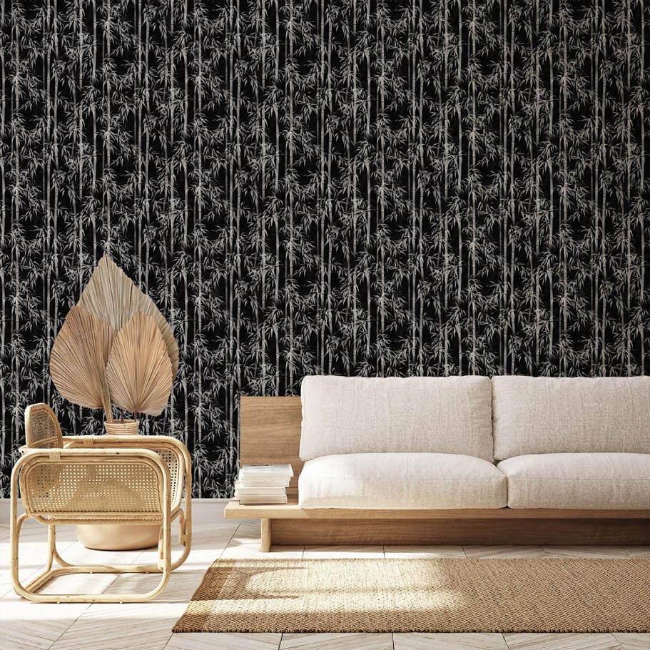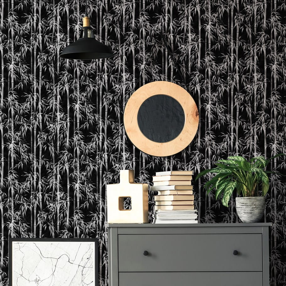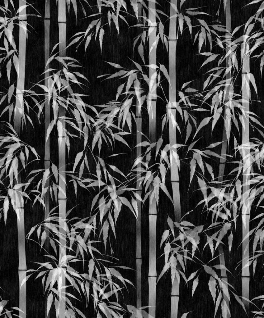 Tipp : Ezüstös bambuszszálak rajzolódnak ki a mélyfekete alapon, mintha egy