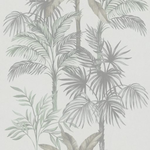 Trópusi feeling! Pálmaliget ábrázolás natur színekben törtfehér szürke szürkésbarna és zöld tónus tapéta