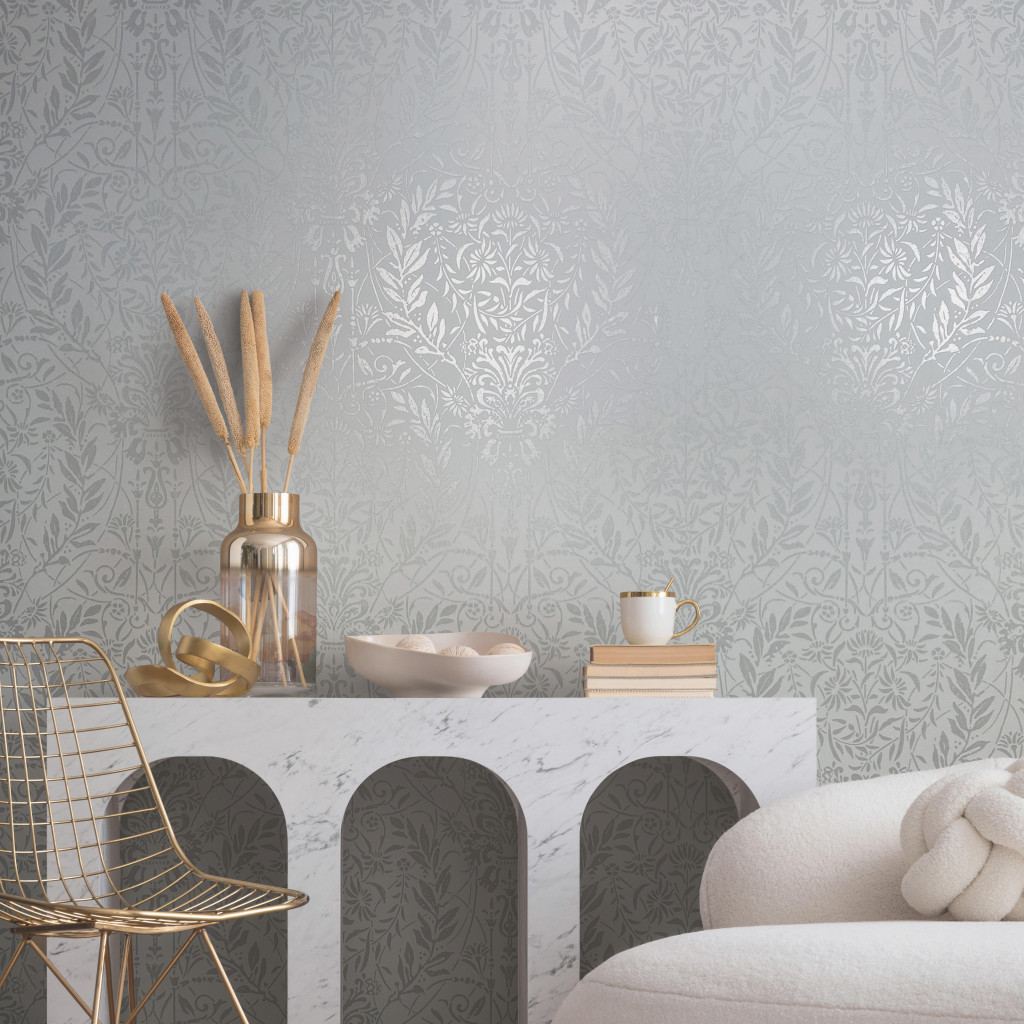 Tipp : Gazdagon rajzolt keleti ornamentika. Jéghideg fehér-ezüstszürke alapon