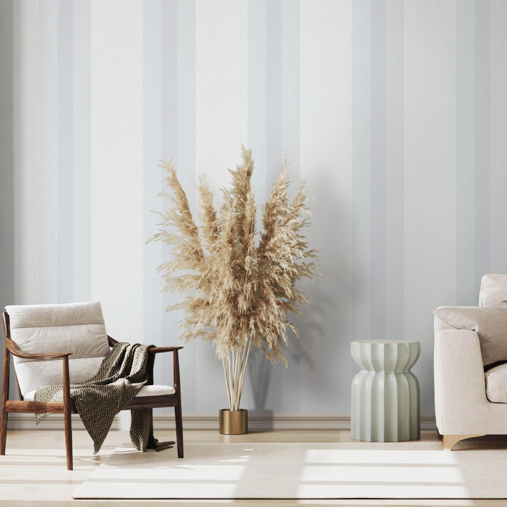 Tónusos csíkok váltakozó szélességben pasztell árnyalatban fehér szürke és hűvös ezüstös acélkék tónus tapéta