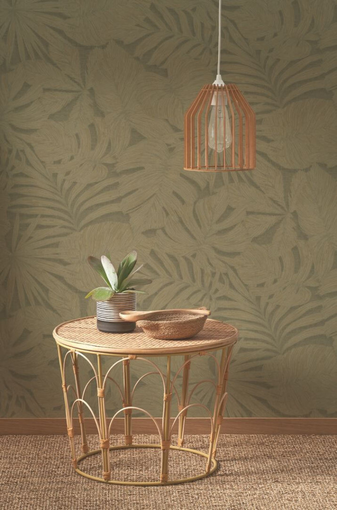 és filodendron motívumokkal kápráztat el, kifinomult taupe és olíva árnyalatokban