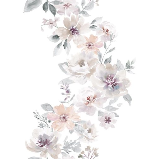 Lazán kötött függőleges virágcsokrok hullámzanak akvarell színorgiában krémfehér púderrózsaszín levendula és hamvasszürke tónus tapéta