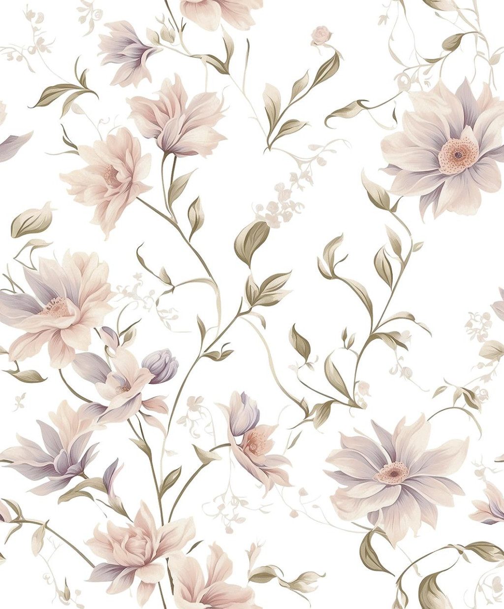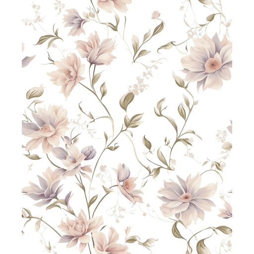 halvány szürkéslila és krémszínű virágok kúsznak fakózöld indákon