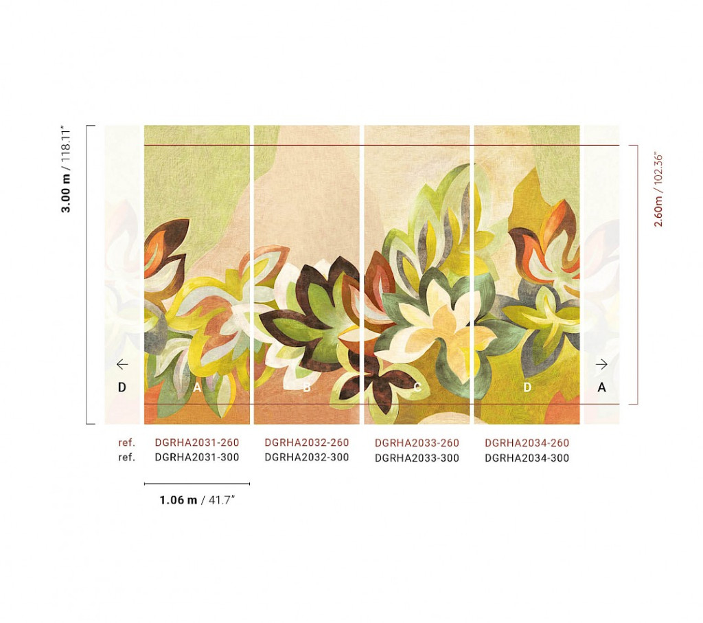 posztertapéta organikus levélmintái a retro és az art deco stílust ötvözik.