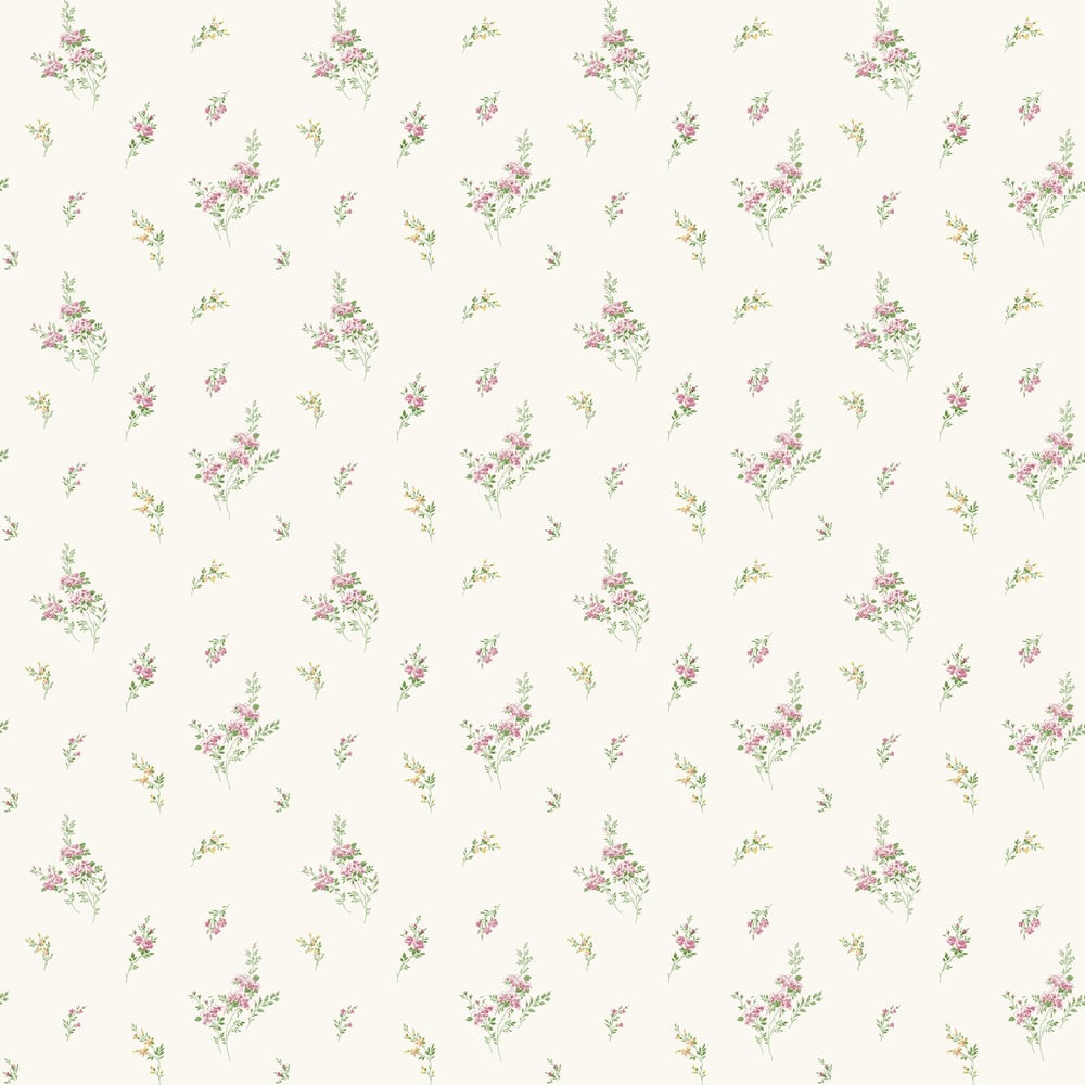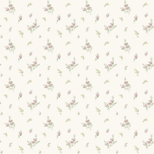 otthonunkba. A krémfehér alapon szétszórt rózsaszín és zöld virágcsokrok olyanok, mintha