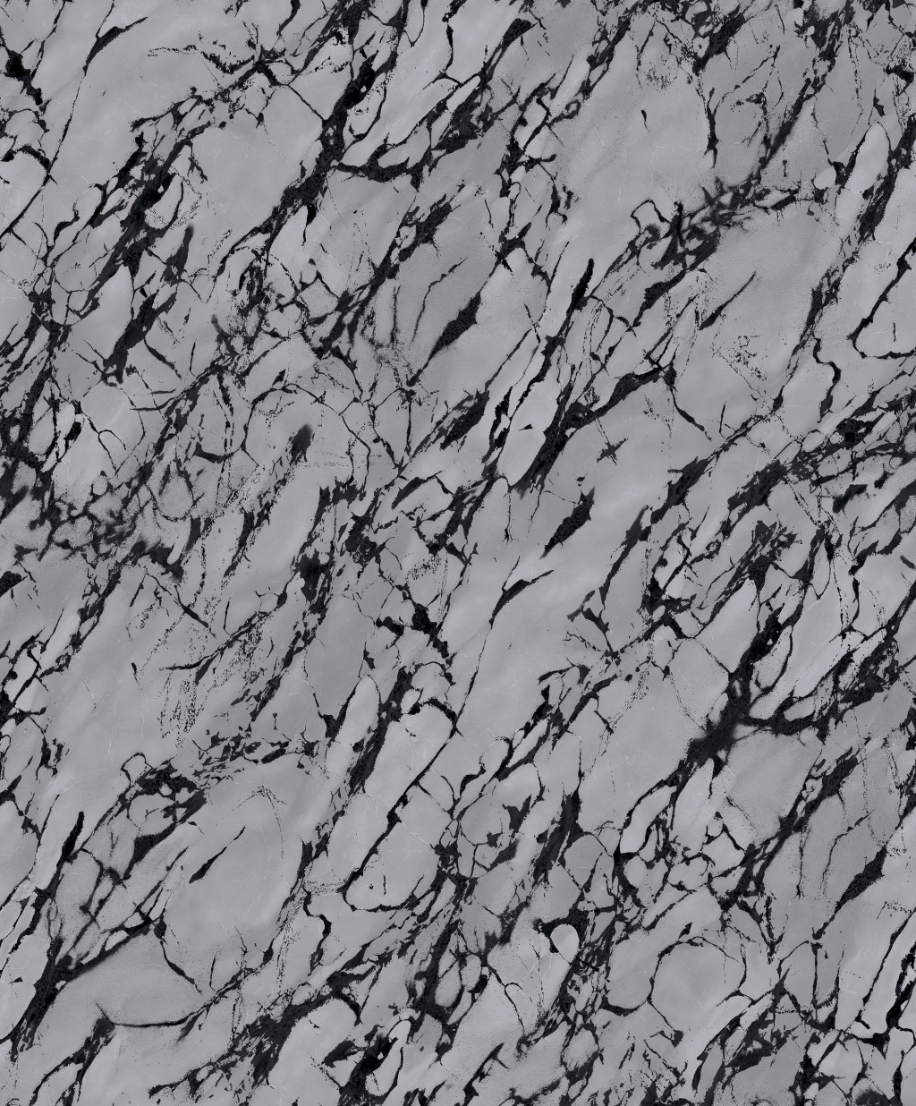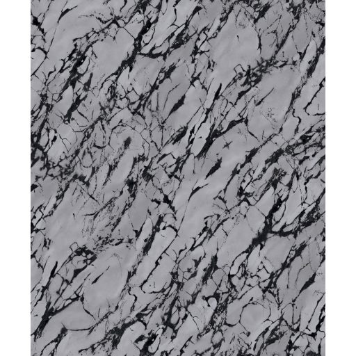 Márványerezetes szürkés-ezüstös alapon drámai fekete mintázattal.