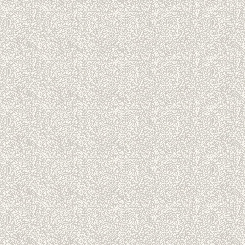 Lágy szürkésbézs alapon apró krémfehér virágocskák és geometrikus növényi