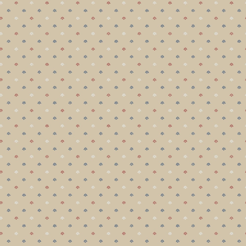 új köntösbe. A meleg bézs alapon szétszórt apró liliommotívumok fehér, bordó és kék