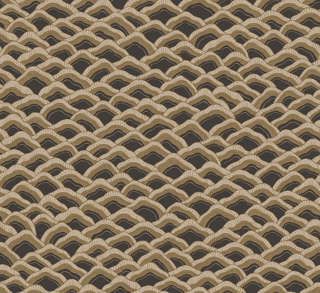antracit alapon arany-bézs árnyalatokban. A finom vonalakkal rajzolt dombok egymásra
